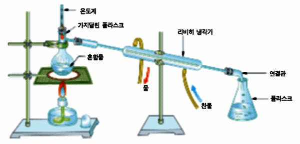 액체 혼합물을 가열하여 물질의 휘발성의 차이를 이용하여 각 성분을 분리하는 방법이다.