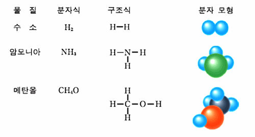그림 I-8 분자의 화학식과 구조 모형