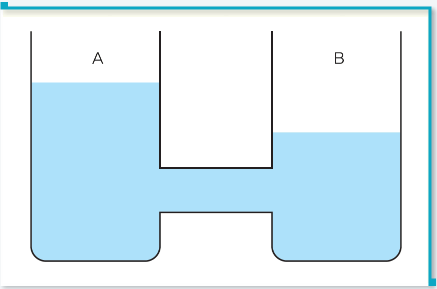 µÎ °³ÀÇ ÅÊÅ© A¿Í B¸¦ ¿¬°áÇϰí ÅÊÅ© A¿¡ ¹°À» ºÎÀ¸¸é ¹°Àº ÅÊÅ© B·Î È帣°í ³ªÁß¿¡´Â µÎ ÅÊÅ©ÀÇ ¼ö¸é ³ôÀ̰¡ °°¾ÆÁø´Ù. À̶§ ÅÊÅ© A¿Í B »çÀÌÀÇ ¼ö¸é ³ôÀÌÀÇ Â÷°¡ Ŭ¼ö·Ï B·Î È帣´Â ¹°ÀÇ ¼Óµµ´Â »¡¶óÁø´Ù. ¿©±â¿¡¼ µÎ ÅÊÅ©ÀÇ ¼ö¸éÀÇ ³ôÀÌÂ÷´Â µÎ ¹°Ã¼»çÀÌÀÇ ¿ÂµµÂ÷¿Í °°´Ù°í º¼ ¼ö ÀÖ°í, ÀÌ Â÷°¡ Ŭ¼ö·Ï ¿Àü´Þ ¼Óµµ´Â »¡¶óÁø´Ù.