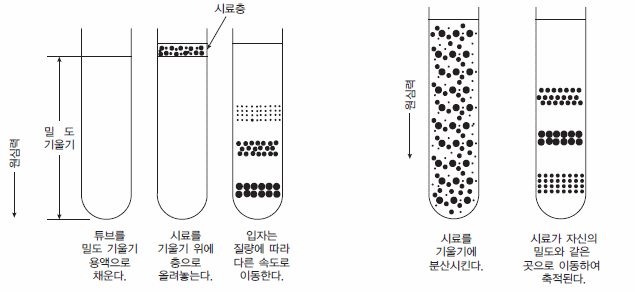 - 용액의 밀도는 튜브 아래로 내려갈수록 증가하기 때문에 원심 분리 중의 대류에 의한 혼합을방지