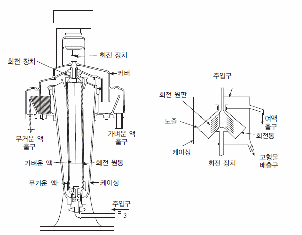 2) 분리판형 원심 분리기(disk-type centrifugal settler)