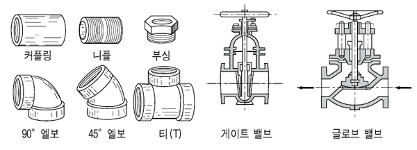 ½ÇÁ¦ À¯Ã¼¸¦ ¼ö¼ÛÇϱâ À§ÇÑ ¹è°ü¿¡¼´Â È帧ÀÇ ¹æÇâÀ» ¹Ù²Ù°Å³ª À¯·®À» Á¶ÀýÇϱâ À§ÇÏ¿© ¹ëºê³ª À¯·®°è¸¦ ºñ·ÔÇÏ¿© ±×¸²°ú °°Àº ¿©·¯ °¡Áö °ü ºÎ¼ÓǰÀ» ¿¬°áÇÑ´Ù.