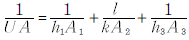 이 식은 총괄 열전달 계수 U와 경막 열전달 계수 h1, h3와의 관계를 나타낸다.