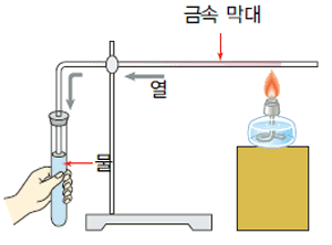 금속의 한쪽을 가열하면 다른 쪽까지 뜨거워지는 현상처럼 온도가 다른 두 물체를 접촉시켰을 때 물질의 이동이 일어나지 않고 열이 이동되는 현상을 전도라고 한다. 그림 1과 같이 금속 막대의 한쪽 끝을 가열하면 다른 쪽 끝까지 뜨거워져 시험관 속의 물이 데워지게 되는데, 이는 금속 막대를 통해 열이 전도되었기 때문이다.