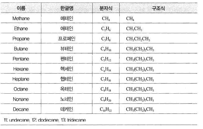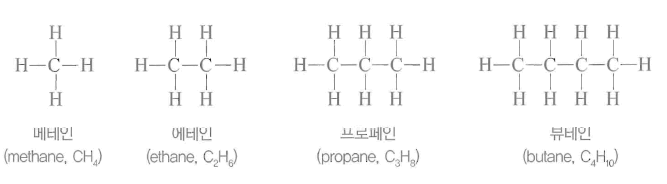 - 포화 탄화수소 : 탄소 결합이 모두 단일 결합