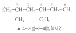 - 숫자와 숫자 사이에는 쉽표를 넣고, 숫자와 문자 사이에는 hyphen(-)을 사용하며, 마지막 치환기 이름과 기본 알케인의 이름은 붙여서 쓴다.