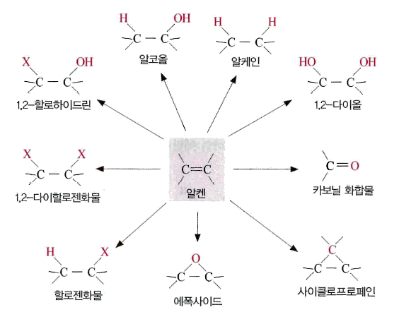 그림 알켄류로부터 제조될 수 있는 다양한 형태의 화합물
