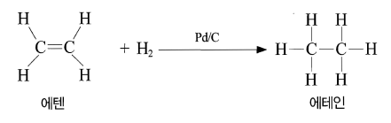 - 수소 첨가 반응 : 수소와 촉매하에 반응하여 에텐 생성