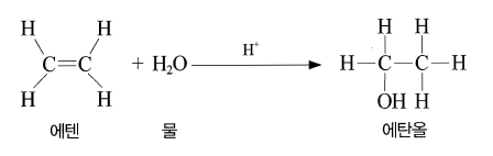 - 물 첨가 반응 : 물과 첨가 반응을 하여 에탄올을 내놓는다.