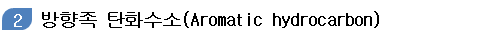 - 방향족 탄화수소 : 분자 내에 벤젠 고리를 포함하는 불포화 탄화수소