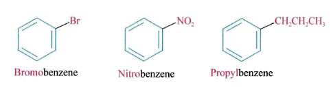 - 단일치환체 : 벤젠의 1치환체들은 벤젠 앞에 치환기의 이름을 붙여서 명명
