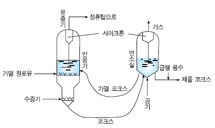 - 오늘날 주로 사용하는 열분해법은 코킹법으로 잔류물을 모두 코크스로 만들기 위해서 반응 시간을 길게 하고 있다.