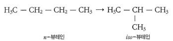 - 곧은 사슬 모양의 탄회수소를 곁사슬까지에 있는 탄화수소로 만드는 방법
