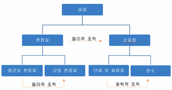 물리적 조작을 통하여 두가지 이상의 물질로 나눌 수 있다.