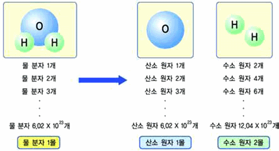 그림 I-25 원자나 분자를 아보가드로 수 만큼 모을 때 질량
