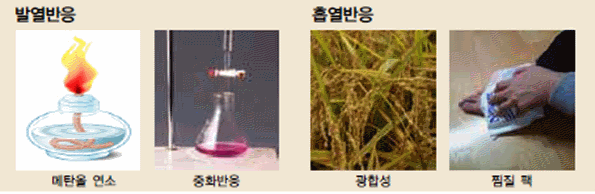 다음 그림의 화학반응에서 각 반응이 일어날 때의 에너지 출입 관계를 탐구 해 보자.