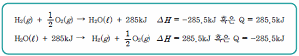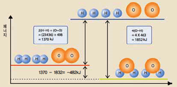 그림 Ⅲ-4 2H2(g) + O2(g) → 2H2O(g)에서 결합 엔탈피와 반응 엔탈피