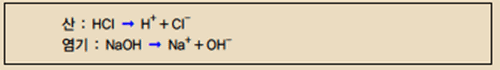 산 : 수용액에서 H+를 내는 물질     염기 : 수용액에서 OH-를 내는 물질