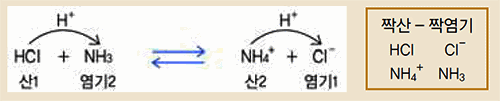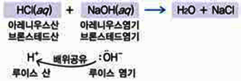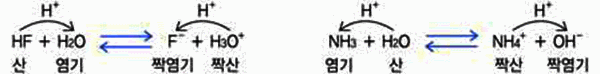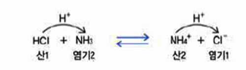 산 : H+(양성자)를 내는 물질     염기 : H+(양성자)를 받는 물질