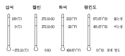 그림 Ⅰ-5 여러 온도 눈금 사이의 관계