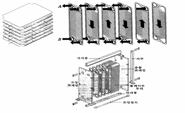 - 다수의 평판을 일정 간격으로 배치하고 그의 통로 하나 걸러서 마다 각각의 유체를 통하도록 고안된 형식