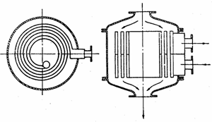 - 코일형 냉각기 : 관을 코일상으로 말아서 용기 내에 삽입하여 관 내 유체와 용기 내의 유체를 열교환