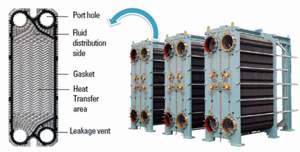 - 평판식 열교환기는 압력손실이 적은 것이 특징이며 보일러용 예열기에서 많이 볼 수 있다.