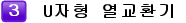 - 전열관에 U자형을 사용한 관속의 관판을 원통용기의 쉘끝단에 플랜지 이음으로 고정하고, 전열관은 쉘과 관계없이 유체온도에 의한 신축이 자유로이 작동되어야 하며, 관속을 쉘에서 인발해서 청소 및 점검할 수 있는 구조의 열교환기.