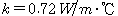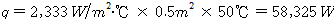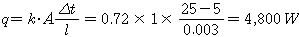 추운 겨울에 두께가 3mm인 유리창 안쪽의 실내 공기가 25℃이고 바깥쪽의 공기가 5℃라면 이 때, 유리창을 통한 열손실량은 얼마인가?(단 유리의 열전도도는 0.72W/m·℃ 이다.)