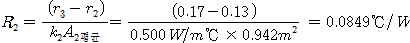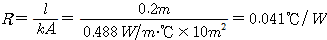 열전도도가 0.488W/m·℃인 균일 물질로서, 두께 20cm, 넓이가 10 m2인 가열 가마의 벽이 있다. 이 벽의 내면 온도가 300℃, 외면 온도가 50℃라 할 때, 이 벽면의 열저항과 열손실량을 구하여라?.