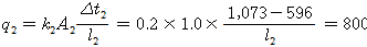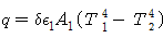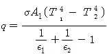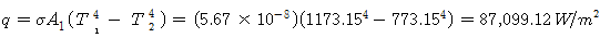 무한히 평행한 두 개의 흑판이 있다. 각각의 표면 온도가 500℃, 900℃일 때 복사에 의한 단위 넓이 당 열전달량을 계산하여라.