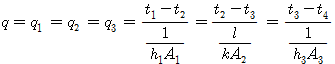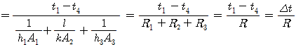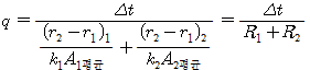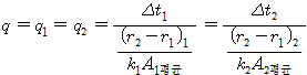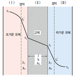 그림 Ⅲ-6 여러 층의 벽을 통한 열전도도