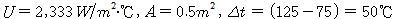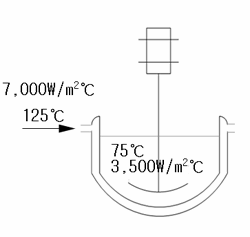 수증기로 가열하는 가열 넓이 0.5m2인 이중 반응기에서 액상 반응을 시키고 있다. 반응물은 교반기로 교반해 주면서 반응 적정 온도인 75℃을 유지해 주기 위하여 125℃의 포화 수증기를 공급하고 있다. 반응열과 열손실을 무시할 경우, 열공급 속도를 구하여라.(단, 경막 계수는 수증기측이 7,000W/m2․℃, 반응물측이 3,500W/m2․℃이며, 반응기의 금속 벽의 저항은 무시한다.)