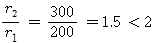 안쪽 반지름 200mm, 바깥쪽 반지름 300mm인 원통벽이 있다. 이 원통벽의 안쪽 온도가 900℃이고 바깥쪽 온도가 300℃일 경우 원통 1m당의 열손실을 구하여라.(단, 원통벽의 열전도도는 0.5W/m℃이다.)