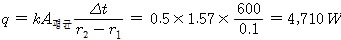 그림 Ⅲ-5 단층 벽을 통한 열전도도