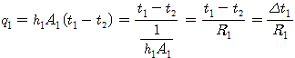 정상 상태에서 단위 넓이에 대한 열전도를 생각한다. 이 때의 접촉 저항은 무시해도 좋으므로