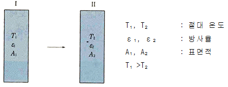 그림 Ⅲ-10 두 물체 표면에서의 복사