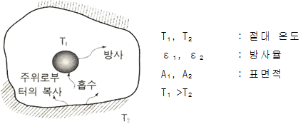 그림 Ⅲ-11 물체가 벽으로 둘러싸였을 때의 복사