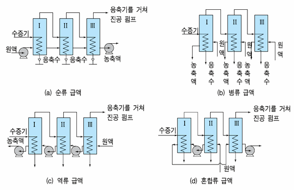 - ¿ª·ù½Ä(backward feed) : ¼öÁõ±â¿Í ¿ø¾×ÀÇ °ø±ÞÇÏ´Â ¹æÇâÀÌ Á¤¹Ý´ëÀÎ ±Þ¾× ¹æ¹ý,